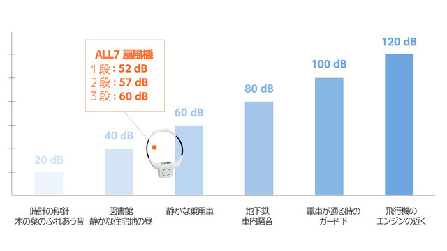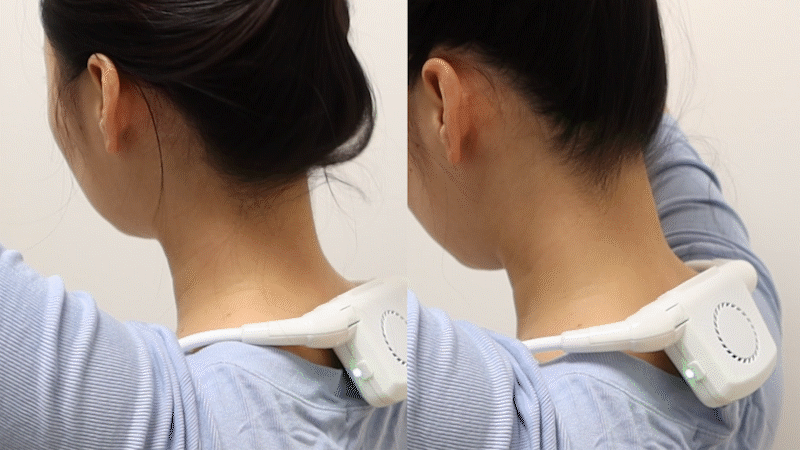 ALL7は、電子製品でも採用されるBLDCモーターを搭載しており、52dB~60dBの静音設計で住宅街程度の騒音レベルで心地良い風を送ります。首掛け形状ながら机におけるフレキシブルなアーム機構を採用し、送風部が上下180度に回転できるため、場所を取ることなく狙った体の部位に風を送り込むことが可能です。