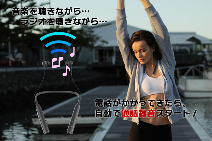 通話録音だけでなく、通常の首掛け式イヤホンとして音声再生も可能です。